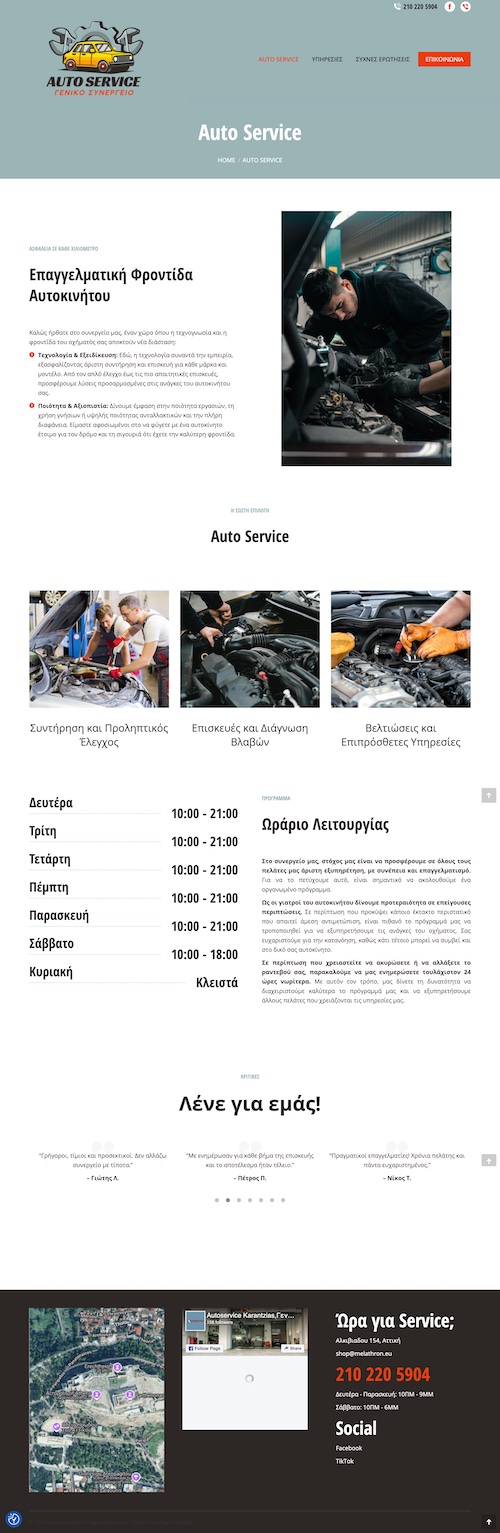 Περιέχει τις σελίδες: Αρχική, Auto Service, Υπηρεσίες, Συχνές Ερωτήσεις, Επικοινωνία.
